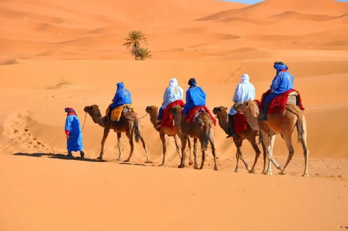Arrival in Merzouga in the afternoon. Meet your camel caravan and begin a sunset camel trek across the magnificent dunes of Erg Chebbi.